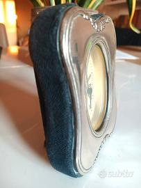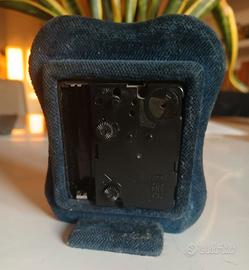 Raffinato orologio da tavola vintage (fine anni ’80, con cornice in argento e velluto blu. NON FUNZIONANTE. Il velluto presenta qualche segno di usura, visibile in foto