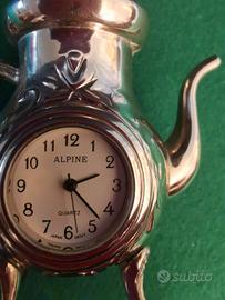 orologio vintage in miniatura orologio al quarzo Alpine piccola teiera in acciaio color argento altezza 7 cm e mezzo