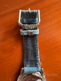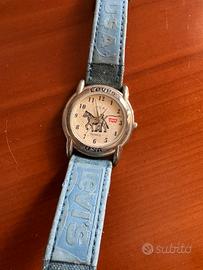 Orologio da polso vintage Levi's con cinturino in tessuto azzurro originale.