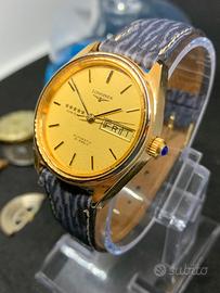 Orologio vintage Longines Admiral 5 stelle Calibro automatico 636.5 perfettamente funzionante revisionato di recente Day-date con scatto rapido inglese e giapponese destinato a mercato asiatico estremamente raro Cassa 33.9 escluso corona Plexy e cinturino nuovo Spedizione rapida e super protetta con tutto subito valuto scambio o permuta
