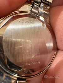 Privato vende orologio Longines da donna originale del 1974 (seriale 17213321), un raffinato esempio di alta orologeria svizzera vintage. Marca: Longines Modello: Lady Automatic (carica automatica) Anno: 1974 Materiale: Interamente in acciaio inossidabile Dimensioni: Cassa piccola (misura tipica dell'epoca per donna) Caratteristiche: Quadrante originale color champagne/sabbia con datario a ore 3. Indici applicati. Fondello: A vite con incisioni originali e numero di serie ben leggibile. Orologio elegante e discreto, perfetto per chi ama lo stile vintage autentico degli anni '70. Condizioni estetiche molto buone, come da foto. Disponibile per consegna a mano o spedizione.