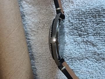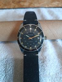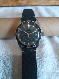 l'orologio subacqueo vintage Mirexal Swiss Divers è un classico dal design elegante e nero, caratterizzato da un quadrante rotondo con numeri arabi. Questo orologio vanta 17 rubini e la tecnologia Incabloc per precisione e durata, rendendolo una scelta affidabile per l'uso quotidiano. Con movimento svizzero e impermeabilità fino a 5 ATM. Il suo stile subacqueo e le lancette multiple aggiungono funzionalità ed eleganza, rendendolo un pezzo senza tempo per la collezione di ogni uomo. Specifiche del prodotto Marca: Mirexal Movimento: Meccanico svizzero a 17 rubini (carica manuale) Caratteristiche: Protezione antiurto Incabloc, datario a ore 3, scala interna delle 24 ore Cassa: 37mm, Fondello in acciaio inox, cassa centrale cromata, presenta qualche segno dell'età. Numero di serie: 757361 Ghiera: Ghiera girevole bidirezionale per subacquei (in buone condizioni, un pò dura da girare, manca il dot luminoso a h.12) Impermeabilità: Impermeabilità originale 5 ATM (non testata per immersioni moderne) Bracciale: aftermarket, in gomma con rifinitura camoscio nero Storia: Gli orologi Mirexal erano pezzi di alta qualità di fabbricazione svizzera, venduti esclusivamente in Svizzera, il che li rende un pezzo unico per i collezionisti di altri paesi.