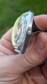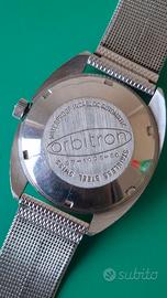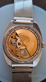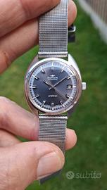 Orologio automatico Mondia Orbitron, un segnatempo vintage prodotto tra la fine degli anni '60 e l'inizio degli anni '70. Mondia era un marchio svizzero che si unì al gruppo Zenith e Movado nel 1969, condividendo spesso componenti e movimenti tra questi marchi gemelli. Il nome riflette la frenesia della corsa allo spazio di fine anni '60 ed è considerato un orologio vintage raro e da collezione. Condizioni 100% originale in tutte le sue parti, nel complesso in buone condizioni vintage, (vedi fotografie), perfettamente funzionante, revisionato qualche anno fa. Referenza: 97-1008-60. Quadrante: Quadrante grigio con finitura a soleil, lancette argentate e indici applicati. Materiale: Cassa in acciaio inossidabile C-shape e fondello a vite con incisione "Orbitron", vetro acrilico. Corona – Originale logata. Movimento – Movimento automatico Mondia basato sul Cal. AS 1913, 25 rubini, 21.600 alternanze/ora. Cinturino – Bracciale milanese aftermarket usato. Circonferenza massima del polso 20,5 cm. Funzioni – Datario con meccanismo di regolazione rapida attivabile premendo la corona. No scatola/documenti. Non è stato sottoposto a test di impermeabilità. La cassa misura circa 35 mm di diametro (esclusa la corona), 40 mm da ansa ad ansa, 11,5 mm di spessore e 18 mm di larghezza delle anse. Questo articolo è di seconda mano, quindi si prega di notare che potrebbe presentare graffi, macchie, scolorimenti, scrostature e deterioramento dovuto all'età. Se siete sensibili a tali difetti, siete pregati di astenervi dal fare offerte. Salvo diversa indicazione, l'orologio non è stato revisionato. La manutenzione sarà a carico dell'acquirente. Le immagini fanno parte della descrizione. Vendita con formula visto e piaciuto. Se hai bisogno di ulteriori informazioni o assistenza, non esitare a contattarmi. Apprezzo il tuo interesse e sei il benvenuto anche a dare un'occhiata ai miei altri annunci dove vendo anche TAG Heuer, Longines, Citizen, Seiko, Tudor, Hamilton, Rado, Omega.