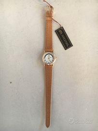 Vendo elegante orologio vintage marca Monil (orologi svizzeri di precisione), con movimento a quarzo, datario a semicerchio e con cinturino in vera pelle. L’orologio è nuovo, cartellinato e perfettamente funzionante. Dimensione della cassa: diametro 2.1 centimetri.