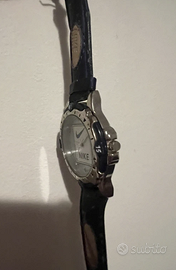 PEZZO RARO • Brand: Nike • Linea: Heritage / Sport Casual • Periodo: Fine anni '90 / Primi anni 2000 (Era Y2K) • Movimento: Quarzo analogico ad alta precisione (Giapponese) • Quadrante: Argento satinato con logo "Swoosh" e scritta "NIKE" in box rettangolare • Indici: Numeri arabi circolari e scala dei minuti a puntini neri • Lancette: Modello "Alpha" con inserti luminescenti (ore/minuti) e lancetta secondi sottile • Cassa: Lega metallica satinata anti-riflesso • Ghiera: Fissa, bicolore (Argento/Blu Navy) con numeri incisi (15, 30, 45, 60) • Vetro: Minerale antigraffio a protezione del quadrante • Cinturino: Originale Nike in polimero blu scuro con inserti ovali "Swoosh" in rilievo • Chiusura: Fibbia ad ardiglione in acciaio inossidabile • Fondello: Acciaio inossidabile serrato a pressione • Estetica: Sport-Tech / Gorpcore / Vintage Distressed DESCRIZIONE DETTAGLIATA DELL'ARTICOLO Questo orologio rappresenta un pezzo autentico della transizione stilistica di Nike tra gli anni '90 e l'inizio del nuovo millennio, un periodo in cui il brand ha ridefinito il concetto di accessorio sportivo fondendo tecnicità e lifestyle. Il cuore estetico del modello è il suo quadrante argento satinato, che cattura la luce in modo soffuso, mettendo in risalto il celebre logo "Swoosh" sovrastante la scritta "NIKE". La grafica è racchiusa in una doppia cornice nera, un richiamo visivo diretto al merchandising "Heritage" che ha reso iconico il brand in quegli anni. La lettura dell'ora è facilitata da numeri arabi disposti con una curvatura dinamica che segue il perimetro interno, mentre le lancette luminescenti garantiscono una funzionalità ottimale anche in condizioni di oscurità.
