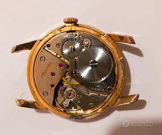 Nivada Compensamatic Incabloc Gold, un vero gioiello di orologeria svizzera che incarna lo spirito e l'eleganza deglianni '70. Questo modello, a carica manuale rappresenta un'occasione unica per gli appassionati e i collezionisti di orologi di aggiungere un pezzo esclusivo e intramontabile alla loro collezione. Un Cuore Pulsante di Precisione e Affidabilità Al centro di questo raffinato dresswatch batte ilcalibro Unitas 6450 con 17 rubini, noto per la sua robustezza e precisione. Dotato del sistema Incabloc per una migliore resistenza agli urti, il Nivada Compensamatic riunisce la Maestria dell'era svizzera, combinando performance eccellente con un design elegante. Caratteristiche Distintive Movimento: Calibro Unitas 6450, 17 rubini, carica manuale, con sistema Incabloc. Cassa: 35mm per 9 mm di spessore, dorata, con alcuni parti di placcatura saltata Referenza: 33004, un numero che sottolinea l'esclusività e l'unicità di questo modello.Perfettamente Funzionante e Revisionato