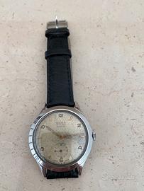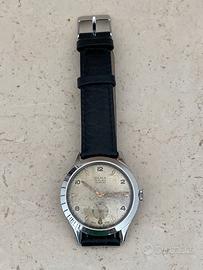 Per immediato realizzo si propone in vendita orologio vintage degli anni 50/60 marca OLMA a carica manuale interamente in acciaio . Si tratta di un orologio a carica manuale revisionato con cinturino nuovo del tipo commerciale con movimento swiss made. No perditempo