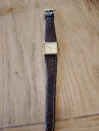 Orologio laminato in oro 18 carati, vintage perfettamente funzionante, carica manuale. Cinturino in pelle marrone