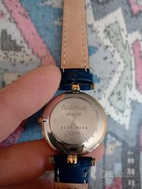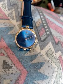 orologio Paul Picot movimento al quarzo, ultra-piatto con cassa placcata in oro giallo e caratteristico quadrante blu lucido, 28 mm