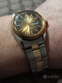 È un modello vintage Swiss Made con funzione day-date, che indica il giorno della settimana e la data.