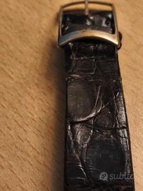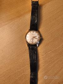 orologio da uomo vintage,marca Revue. Ricarica manuale, ghiera placcata oro e cassa in acciaio. Cinturino un po' usurato, coccodrillo, . Funzionante.