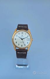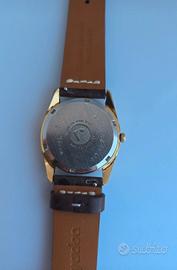 In vendita splendido Roamer Searock vintage, un classico dell'orologeria svizzera dal design intramontabile e sportivo-elegante. Caratteristiche principali: Marca: Roamer Modello: Searock Movimento: Meccanico (Svizzero), perfettamente funzionante. Quadrante: Bianco/Argenteo con numeri arabi neri ben leggibili e finestra della data a ore 3. Cassa: Placcata oro (fondello in acciaio inossidabile). Cinturino: Nuovo, in pelle marrone di alta qualità (non originale), con cuciture a contrasto che ne esaltano lo stile vintage. Condizioni: L'orologio è stato testato ed è marciante. Essendo un pezzo d'epoca, presenta dei graffi sul vetro dovuti al tempo e all'utilizzo, che ne testimoniano l'autenticità (facilmente lucidabili o sostituibili da un orologiaio con poca spesa). La cassa presenta una normale patina del tempo