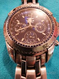 Sector SGE650, (serie "No Limits" anni '90) con maglia di ricambio e documetazione originale. Acciaio, vetro in zaffiro privo di graffi e praticamente intatto, cassa waterproof 300 mt, movimento svizzero. Buone condizioni generali, leggeri segni di usura su cinturino e cassa.