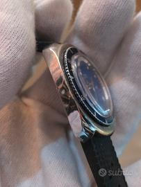 Orologio vintage skin diver da uomo marcato Garel. Carica manuale ricontrollato e testato da poco perfettamente funzionante. Orologio davvero in ottime condizioni, dial perfetto di un bellissimo colore blu. Ghiera intatta. Diametro di 40mm senza corona. Stupendo con il suo cinturino tropic di ottima qualità.
