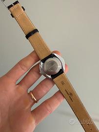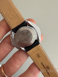 Orologio vintage Timex Meccanico a carica male Cassa ufo diametro 38mm Quadrante nero ottime condizioni Vetro plexi Cinturino in pelle generico Orologio perfettamente funzionante e preciso.