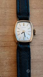 In ottime condizioni e funziona perfettamente, cassa in acciaio placcata oro, orologio meccanico Swiss made a carica manuale, acquisto nel 1972, tutto originale compreso il cinturino. Misura mm. 17X12x5.