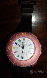 Orologio vintage United Colors of Benetton, prodotto da Bulova. Un pezzo unico per gli amanti del design retrò. - Cassa color rosa - Cinturino nero in plastica. - Quadrante multicolore con indici colorati. Mod.dep. Numeri interni con linee di colore differenti Cinturino in plastica Marrone. Non funzionante per pila da cambiare. Visionabile e pronto ad inviare ulteriore foto. Prezzo € 14,00. Pagamento e spedizione tramite Subito.it oppure Consegna diretta in zona Cremona città.