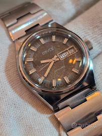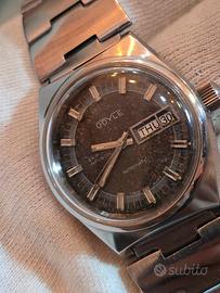 Orologio vintage da uomo Doyle interamente in acciaio con movimento automatico day date Eta. Bracciale coevo in acciaio. Ben funzionante e preciso. Davvero piacevole al polso. Particolare il quadrante virato ma piacevole che lo rende unico.