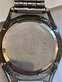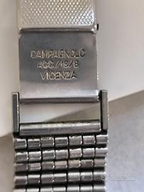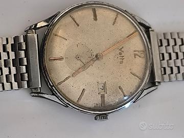 Vetta: Marca (spesso associata a orologi di qualità). Vintage Orologio Uomo: Parole chiave per i collezionisti. Swiss Made: Indica l'origine del movimento. Datario / Secondi Sub: Funzionalità principali. Patina Raro: Attira i collezionisti che apprezzano l'invecchiamento naturale del quadrante. 📝 Bozza di Descrizione per l'Inserzione Questa descrizione mette in risalto il fascino storico e le condizioni attuali dell'orologio. VETTA VINTAGE – SWISS MADE – DATARIO E PICCOLI SECONDI (Ref. 6378) 🔎 Dettagli dell'Oggetto Marca: Vetta (Swiss) Modello/Referenza: 6378 (Numero sul fondello) Genere: Uomo Movimento: Meccanico a carica manuale (più probabile data l'epoca) Funzioni: Datario (a ore 3), Piccoli Secondi (Sub-Seconds a ore 6). Quadrante: Colore crema/argento, con evidenti segni di invecchiamento (Patina). Indici a bastone applicati e numero 12. Display: Analogico Condizioni Estetiche: Estremamente Vintage / Usato ⌚ Caratteristiche della Cassa e del Bracciale Cassa: Placcata o in metallo cromato, con forte usura e ossidazione visibile. Fondello: Acciaio inossidabile avvitato (STAINLESS STEEL BACK), marcato SWISS MADE e Ref. 6378. Bracciale: Maglia in metallo, marcato CAMPAGNOLO ACC. 18/8 VICENZA sulla fibbia interna. Questo bracciale è un accessorio d'epoca interessante e di alta qualità. ⚠️ Condizioni dell'Orologio Funzionamento:"L'orologio è funzionante, tiene il tempo per un orologio d'epoca. Necessita di una revisione per l'uso quotidiano." Condizioni Estetiche: L'orologio è un vero pezzo vintage e presenta un marcato invecchiamento: Quadrante: La superficie del quadrante presenta una notevole patina (macchie e alterazioni di colore), che è apprezzata da alcuni collezionisti. Cassa: La cassa mostra una forte usura con estesa perdita della cromatura/placcatura, che rivela il metallo sottostante (specialmente sui bordi e nelle anse). Vetro: Presenta graffi e segni. NOTA BENE: A causa dell'età, l'orologio è venduto come pezzo da collezione/vi