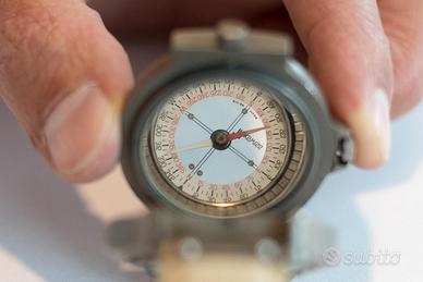 Vendo SPLENDIDO orologio militare vintage anni ‘90 ( WINTEX AZIMUT ), MOLTO RARO, funzionante, in acciaio brunito con bussola in bagno d’olio nel corpo inferiore ( con specchio e mirino per calcolo della direzione ), quadrante nero con indici in materiale luminescente protetto da griglia in acciaio, vetro zaffiro, cassa 40 mm., movimento al quarzo, batteria appena messa nuova ! … acquistato a 880.000 Lire ( ora fuori produzione ma qualche pezzo nuovo in vendita lo si trova sugli 800 euro ).