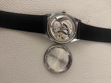 Orologio automatico, con qualche segno del tempo, con un particolare dial in ottime condizioni nonostante l’età, con cassa in acciaio e fondello a vite, presenta il calibro di manifattura di eccellente qualità e precisione 2532PC (ruota di ricarica al berillio e con regolatore a eccentrico). Tutto originale, a parte il cinturino, dotato di corona con il logo della casa. L’orologio è perfettamente funzionante in quanto revisionato di recente. Diametro 34 mm. Evitare offerte ridicole che non verranno prese in considerazione.