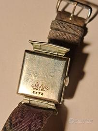 Orologio antico di stile art deco Unver, marchio italiano registrato nel '48 che commercializzava orologi di fine qualità estetica con meccanica svizzera. l'orologio perfettamente funzionante. Anse sono fisse e cinturino in tela.