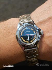 Vostok a carrica manuale, 34mm diametro, 11mm spessore, 18mm le anse, tutto acciaio, in ottime condizioni generali perfettamente funzionante...leggermente trattabile