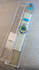 Mai indossato,batteria nuova. Scatola plastica danneggiata. No Swatch