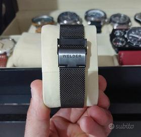 Welder Moody da uomo diametro cassa 40mm. Vetro fotocromatico dal magenta al blu, bracciale in maglia Milano.