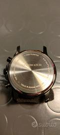 Cronografo Woodwatch Farbound 44mm, cassa in acciaio nero con lunetta in legno naturale, accenti dorati. L'orologio è fornito con doppio cinturino ad aggancio rapido. Movimento giapponese Seiko, preciso ed affidabile. Ottime condizioni, pari al nuovo. Listino 299€