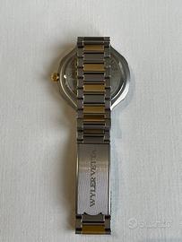 orologio da uomo marca Wyler Vetta Modello Trafalgar, Cassa acciaio satinato diametro 3,7 mm, Fondo acciaio, Movimento al quarzo Swiss Made, Subacqueo 20 ATM (200 metri), Datario, Ghiera bicolore girevole unidirezionale, Corona chiusura a vite, Cinturino in acciaio satinato bicolore acciaio e dorato regolabile, senza scatola originale. Oggetto nuovo proveniente da rimanenze di negozio vendesi euro 150