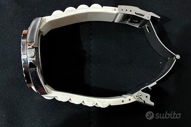 Orologio Yaki da polso donna, quarzo, cassa in acciaio, cinturino in gomma bianco, ghiera con strass. Pari al nuovo, perfettamente funzionante.