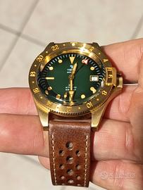 Si tratta di un orologio affascinante, con cassa in bronzo che sviluppa col tempo una patina unica, perfetto per chi cerca un diver iconico con complicazione GMT.