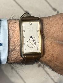 Stupendo orologio classico vintage marca Yema. Raro e introvabile!!! Forma tank rettangolare con secondi piccoli Bellissima e raffinata lavorazione e del Quadrante. Corona marchiata. Rara edizione per il mercato Francese. Simile al Cartier Tank e al Tissot Lisboa. ⚠️ Movimento al quarzo giapponese che ha smesso di funzionare al cambio di batteria. Lancette bloccate. Vendo quindi come non funzionante, da riparare. Descrivo al meglio le caratteristiche del prodotto quindi non accetto resi! Perfetto per polso maschile, ma adatto anche alle donne. Ottime condizioni estetiche. Normali segni di usura. Per appassionati. No scatola. Inclusi n. 2 cinturini eleganti.