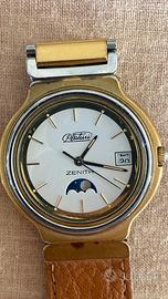 Elegante orologio da polso Zenith Platini, acciaio placcato oro, con meccanismo fasi lunari. Cinturino originale,