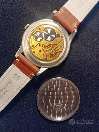 Dalla mia collezione vendo orologio Zenith stellina con cassa in acciaio inox diametro 36,5 mm corona esclusa. Quadrante originale con segni del tempo e corona originale. Cinturino in pelle e vetro plexi nuovi, revisionato completamente a dicembre 2025. Pronto da mettere al polso!