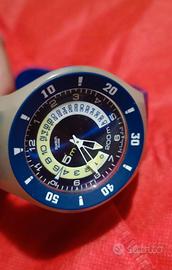 Tipologia Specifica: Non è solo un "Scuba 200" generico, ma un "Fun Scuba" con una funzione aggiuntiva. 2. Funzione Speciale: Questo modello ha una funzione di profondimetro o, più precisamente, un anello interno che aiuta a calcolare il tempo di immersione/risalita (scala gialla-verde che si vede sul quadrante). 3. Dimensioni Cassa: Ha un diametro della cassa di circa 46-47 mm, che è notevolmente più grande dei classici Swatch. 4. Impermeabilità: Confermata a 20 Bar (200 metri). Perfettamente funzionante