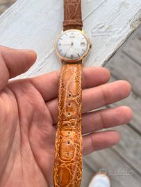 Elegante orologio Tissot Visodate vintage anni ’50/’60, con cassa placcata oro ref. 56000-2. Movimento meccanico a carica manuale Tissot cal. 27B-621, noto per affidabilità e qualità costruttiva. Quadrante classico con datario Visodate, design pulito e senza tempo. Orologio originale, ideale per collezionisti o appassionati di segnatempo svizzeri d’epoca.