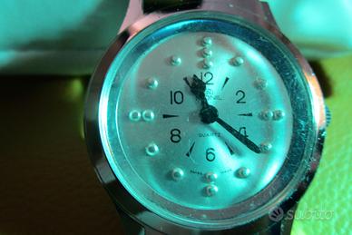 orologio in acciaio al quarzo per non vedenti,con sportellino apribile per consentire il contatto con le sfere e i numeri, orologio quasi introvabile, vendo 35 euro più spese postali