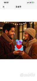 Orsetto Luminoso LED Effetto 3D Multicolore con Cuore Rosso Regalo Romantico . Alimetazione USB