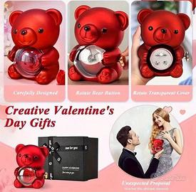 Splendido orsacchiotto decorativo con rosa eterna di colore rosso, perfetto come regalo elegante e simbolico per una persona speciale.