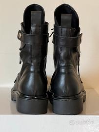 Bellissimi anfibi in vitello nero, con cerniere laterali in color argento, molto comodi
