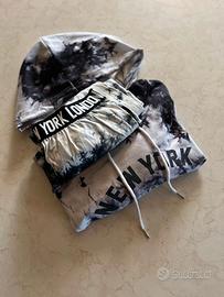 1 felpa verde+1rosa con cappuccio chiusura zip Zara 10/11 anni+leggings nero+ abito maglia stampa animals 9 anni Zara + tuta trendy con cappuccio e scritta