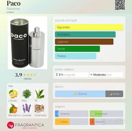Vendo Paco Rabanne Paco (classico), Eau de Toilette, flacone da 100 ml, con circa l’80–90% rimanente.