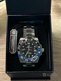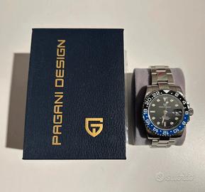 Orologio nuovo automatico Pagani Design PD-1662 GMT in stile “Batman”, dal design sportivo ed elegante. Realizzato con materiali di alta qualità e ottime finiture, è perfetto per chi cerca un GMT affidabile con look ispirato ai grandi diver. 📦 Condizione: Nuovo, mai usato – completo di scatola (Full Set) ⸻ ⚙️ Caratteristiche principali: ✔ Movimento automatico Seiko NH35 (carica automatica + manuale) ✔ Funzione GMT per secondo fuso orario ✔ Cassa 40 mm in acciaio inox 316L ✔ Spessore cassa 14 mm ✔ Vetro zaffiro antigraffio ✔ Ghiera in ceramica nero/blu “Batman” ✔ Bracciale in acciaio inox 316L ✔ Datario con lente Cyclope ✔ Fondello a vite con movimento visibile ✔ Impermeabilità fino a 100 m ⸻ Orologio solido, preciso e versatile, perfetto sia per outfit casual che eleganti. 📦 Disponibile per spedizione o consegna a mano