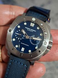 Bellissimo homage con 41 mm di diametro cassa, vetro zaffiro, ottimo movimento automatico con due sottoquadranti indicanti secondi e riserva di carica, cinturino da 22 mm in nylon di ottima qualità e buon spessore con logo sulla fibbia, ottima luminescenza al buio, resistenza all'acqua 200 metri, l'orologio è nuovo, completo di tutto, spedisco velocemente con posta prioritaria tracciabile...