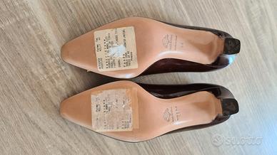 scarpe firmate Mab Studio di Bologna, taglia 36, vera pelle, colore vernice testa di moro, tacco 60. condizioni pari a nuovo, mai utilizzate come si può vedere dalla suola