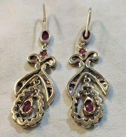 Paio orecchini d 'epoca in oro di titolo inferiore con motivo decorativo realizzato in argento con diamanti e rubini Lunghezza 4,5 cm + 1,5 di monachella larghezza 2 cm Possibile pagare in 3 rate senza interessi, gli acquisti idonei da 30 EUR a 2.000 EUR, utilizzando il proprio conto PayPal. Condizioni di paga in 3 rate con PayPal - Apri e leggi - Condizioni di paga in 3 rate con PayPal Possibile pagare in 3 rate senza interessi con Klarna scaricando l'applicazione al link sotto indicato. Importo massimo € 1.000 Scarica Klarna App e acquista in 3 rate senza interessi