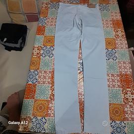 Panaloni da uomo in cotone leggeri celeste pastello molto chiaro TG. 29 made in Italy lunghezza pantaloni 103cm