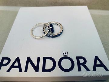 PANDORA 2 Anelli Mis 56 Fascia Blu e Pietra Blu